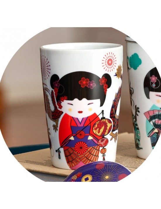 Mug avec filtre et couvercle Geisha Fire - Eigenart