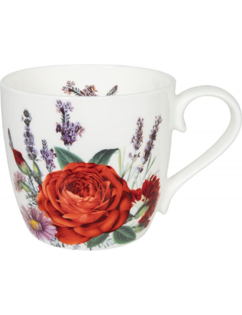 Différentes fleurs délicates ornent cette tasse en porcelaine de Chine légère. Surtout la lavande et les roses.