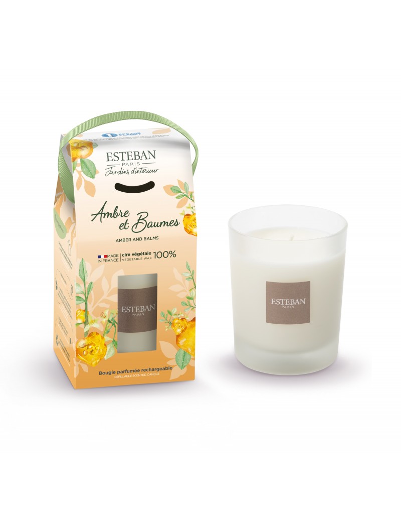 Bougie parfumée rechargeable Ambre & Baumes 180g - Esteban