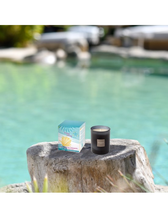 Un parfum d’évasion, résolument solaire, qui nous emmène vers des îles paradisiaques, à travers des huiles essentielles très évocatrices et enivrantes.