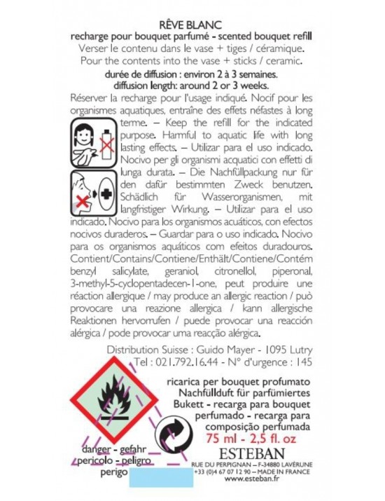 - verser le contenu de la recharge pour bouquet parfumé ESTÉBAN dans le vase