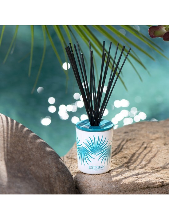 Un parfum d’évasion, résolument solaire, qui nous emmène vers des îles paradisiaques, à travers des huiles essentielles très évocatrices et enivrantes.