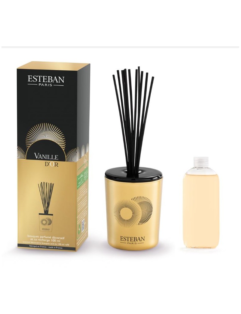Bouquet parfumé décoartif et sa recharge Vanille d'or 100ml - Esteban
