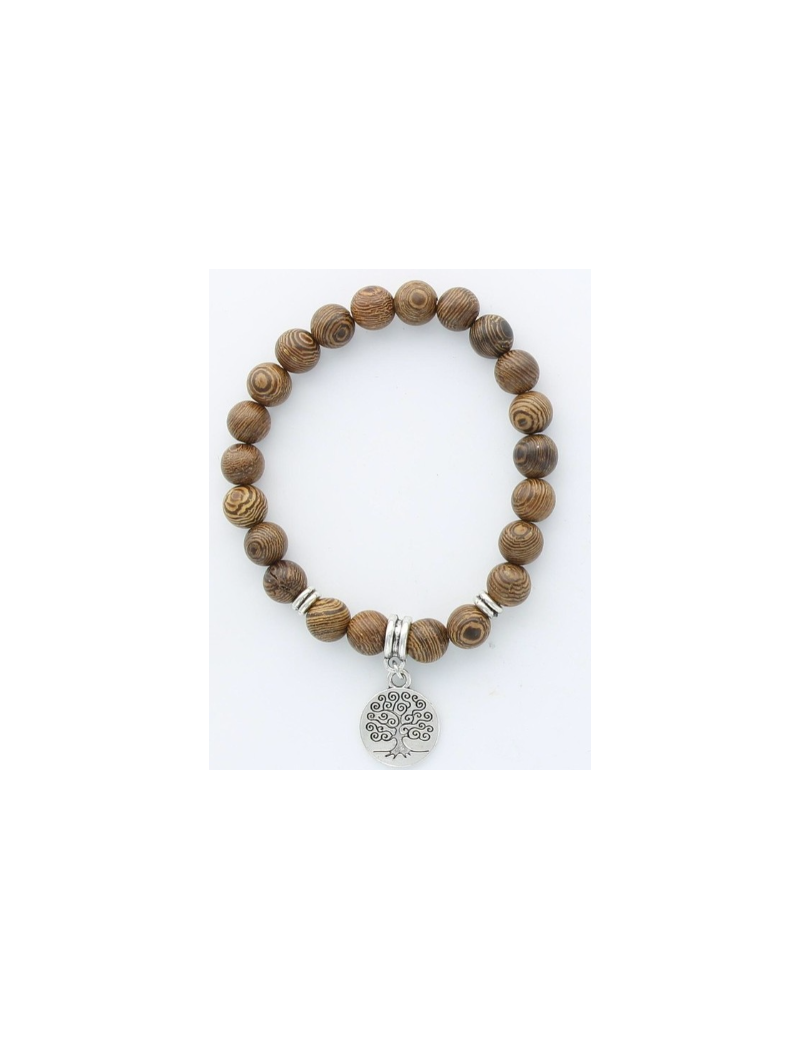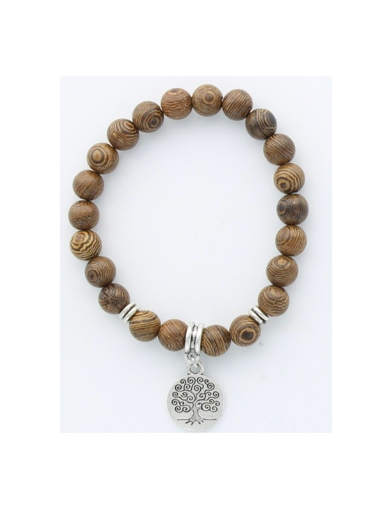 Bracelet bois et charms arbre de vie en alliage de zinc
