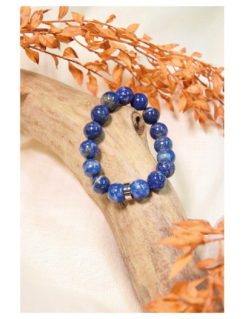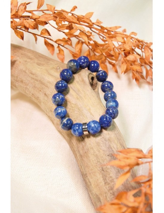 Bracelet élastique composé de perles en pierre naturelle de lapis lazuli. Considéré par les pharaons comme une pierre de sagesse, le lapis lazuli favorise le dépassement des idées reçues, l'ouverture d'esprit et l'intuition. Elle contribue à l'élévation de l'esprit et permet de rester concentré.