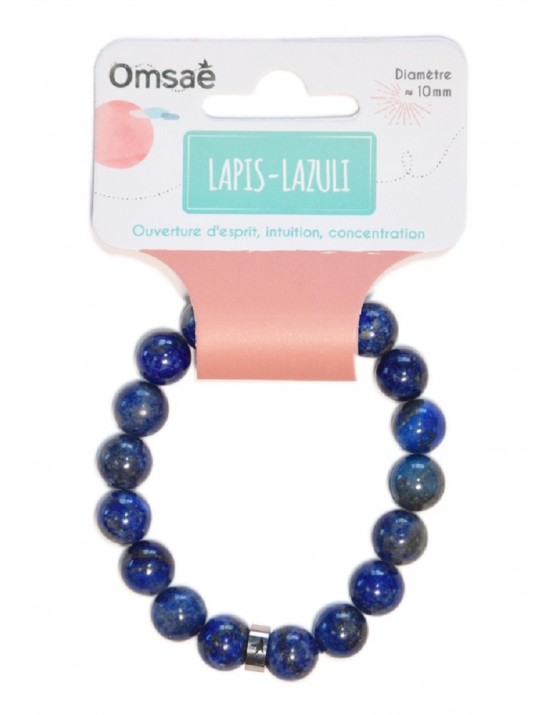 Pierre naturelle et perle Omsaé en acier inoxydable. Diamètre des perles : 10 mm. Longueur du bracelet : env. 19 cm. Origine de la pierre : Afghanistan. Pierres certifiées par un gemmologue français.
