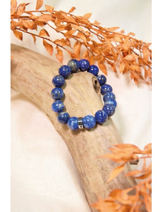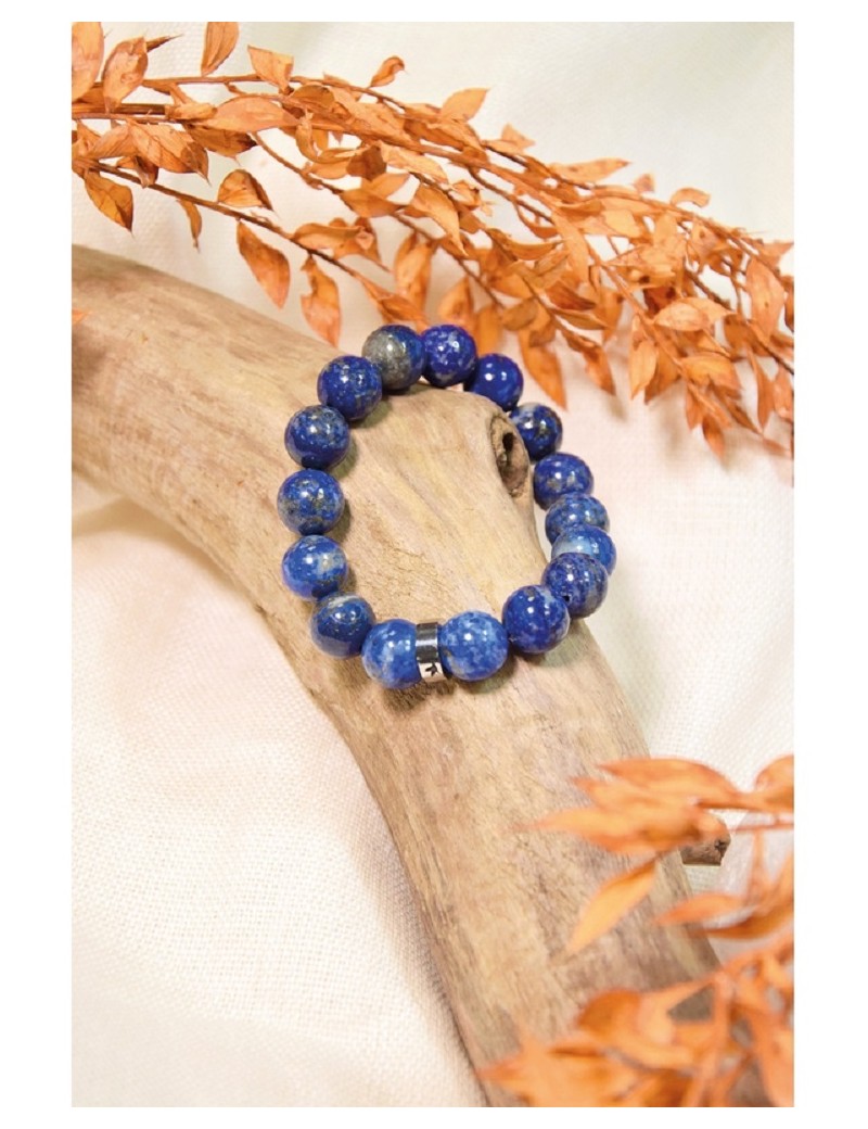 Bracelet élastique composé de perles en pierre naturelle de lapis lazuli. Considéré par les pharaons comme une pierre de sagesse, le lapis lazuli favorise le dépassement des idées reçues, l'ouverture d'esprit et l'intuition. Elle contribue à l'élévation de l'esprit et permet de rester concentré.