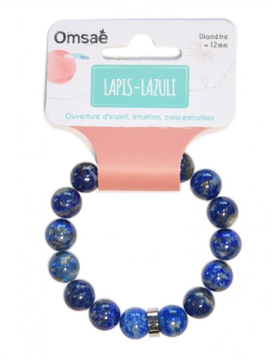 Pierre naturelle et perle Omsaé en acier inoxydable. Diamètre des perles : 12 mm. Longueur du bracelet : env. 19 cm. Origine de la pierre : Afghanistan. Pierres certifiées par un gemmologue français.
