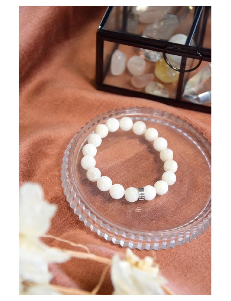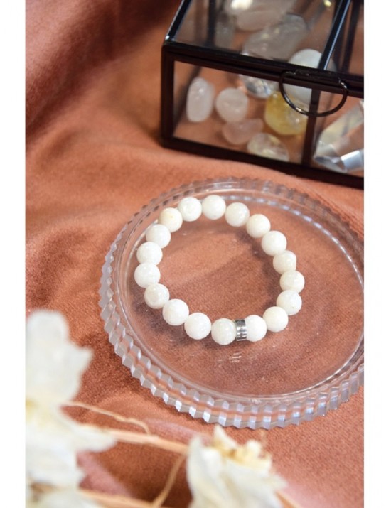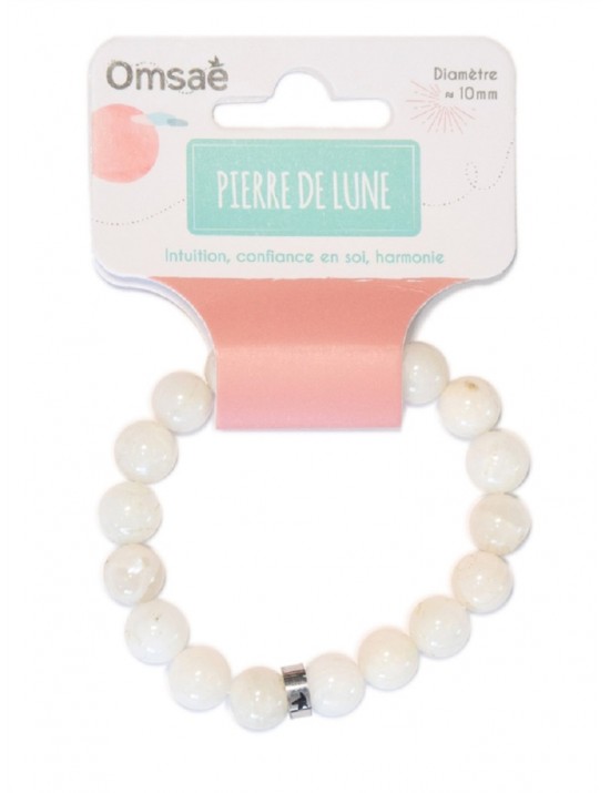 Bracelet élastique composé de perles en pierre naturelle de pierre de lune. Pierre de la féminité, elle symbolise la tendresse et développe la sensibilité et l'intuition. Elle favorise l'acceptation de soi et l'harmonie dans la vie de couple.