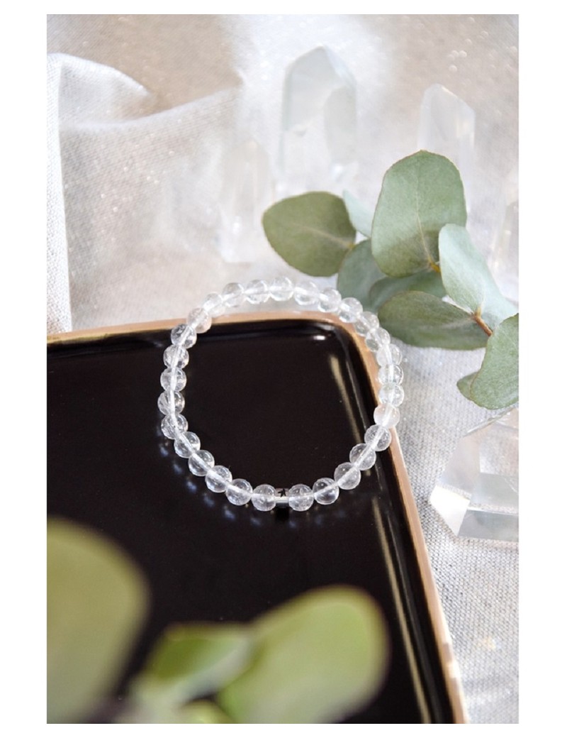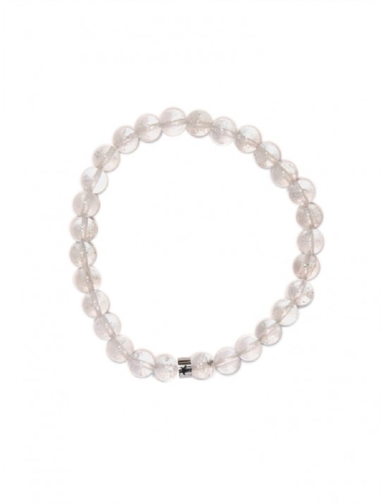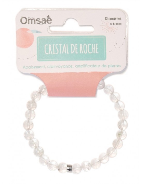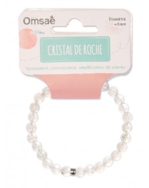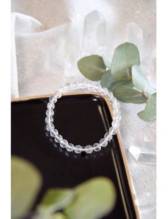 Bracelet élastique composé de perles en pierre naturelle de cristal de roche. Il apporte énergie et sérénité à son porteur. Il clarifie les idées et les émotions. Accentue les propriétés des pierres qui l’accompagnent.