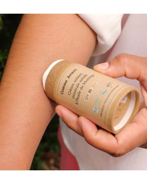 Découvrez crème solaire bio à l'huile de Moringa, avec seulement quatre ingrédients. Composé d'un seul filtre minéral et en format solide, cet...