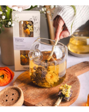 Grande théière transp verre soufflé 1L - HoraeCette élégante théière en verre borosilicate soufflé est conçue pour résister à des températures élevées.