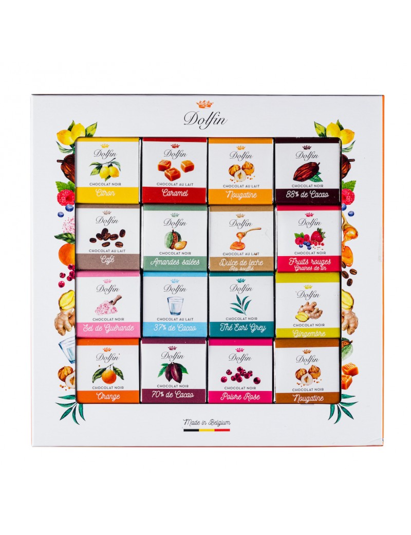 Assortiment de 48 carrés gourmands comprenant 16 saveurs différentes :