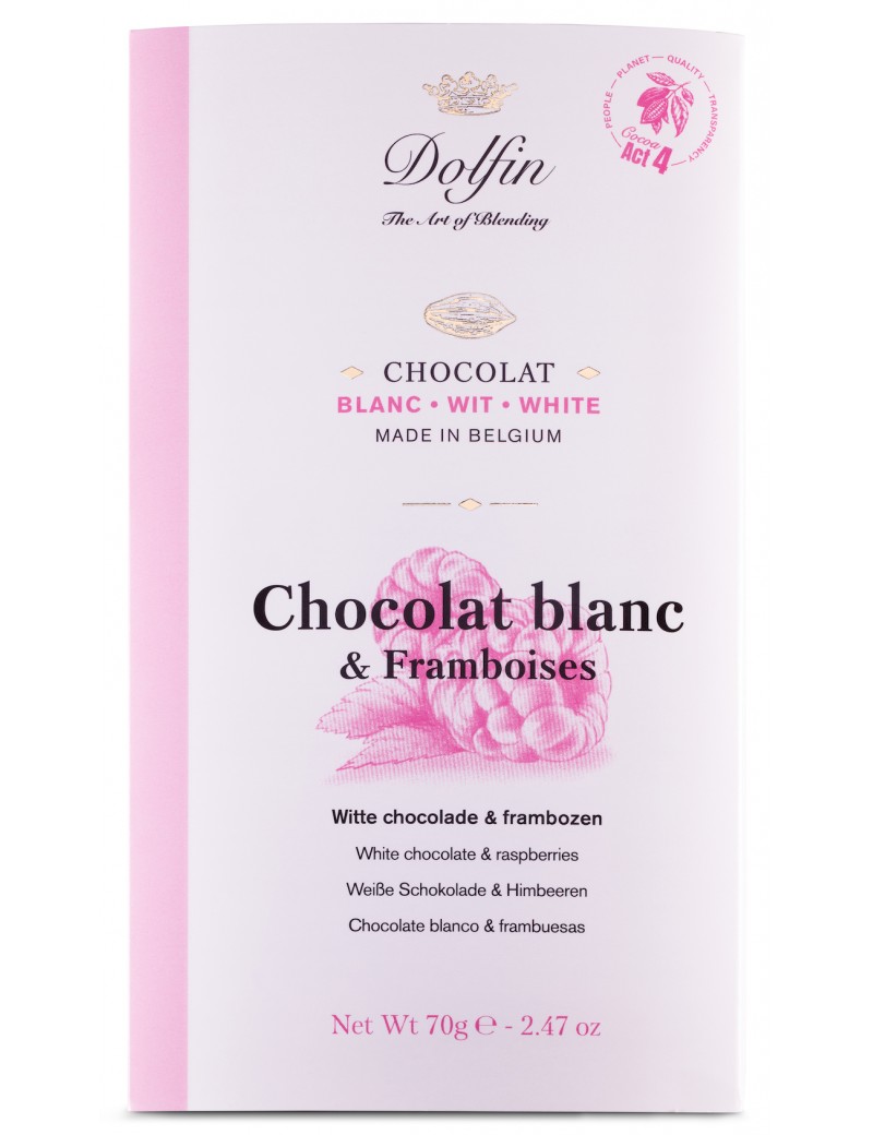 Plébiscité aussi bien par les enfants que les adultes, le chocolat blanc délicieusement doux et crémeux s’allie aux notes acidulées et fruitées des framboises pour un plaisir carrément régressif.