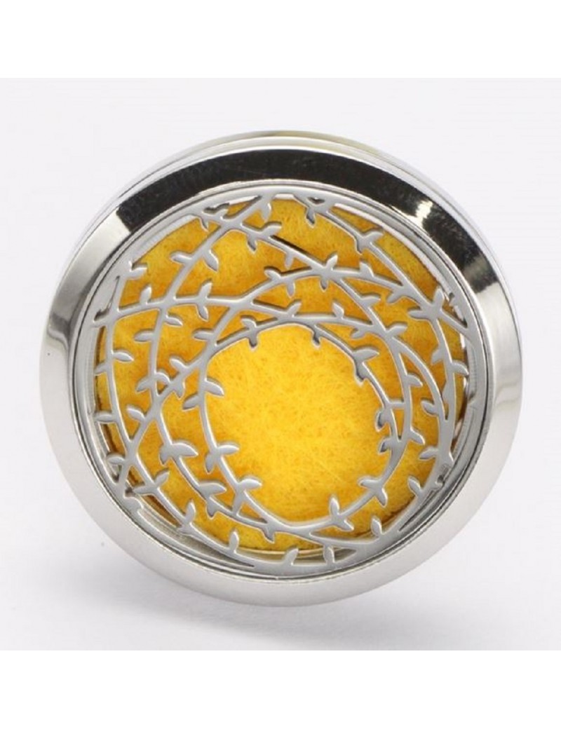 Motif découpé au laser inspiré de la couronne de feuille de laurier, La couronne triomphale! Ce diffuseur voiture en inox se clipse sur la grille d'aération et permet de créer une atmosphère saine et agréable dans le véhicule.