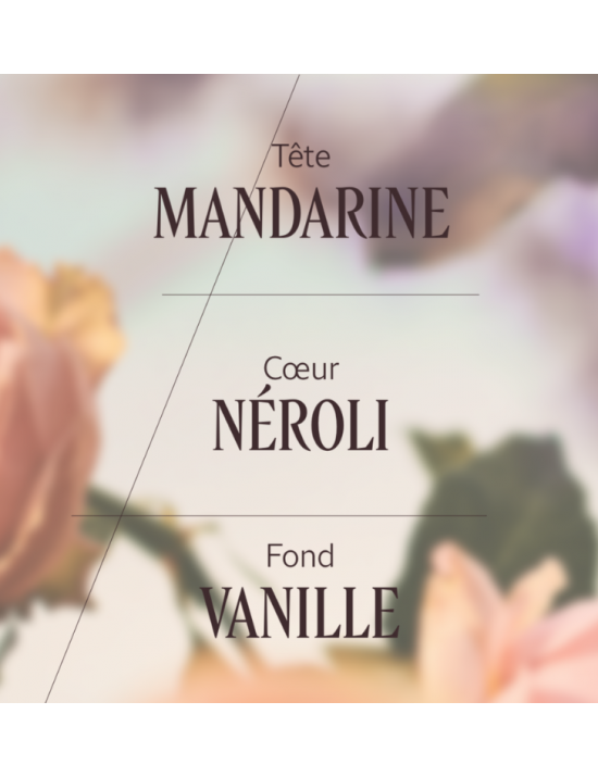 Délicate et emblématique du pays grassois, la fleur d'oranger fleurit au printemps, tandis que l'orchidée, dont le fruit offre un parfum doux et caressant, s'épanouit en automne. L’OCCITANE en Provence vous révèle une fragrance féminine intemporelle issue de l'union de ces deux fleurs : fraîcheur agrume, floral lumineux, note tendre et confortable