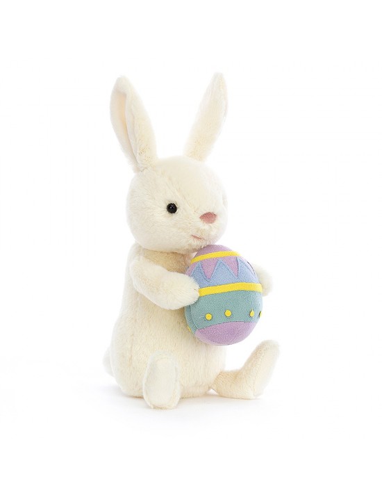 Tout le monde sait que Pâques est le temps du chocolat ! Bobbi Bunny a posé ses pattes sur un joli œuf bleu ciel à motifs et est impatient de le partager avec son nouveau meilleur ami. Quelle douceur !