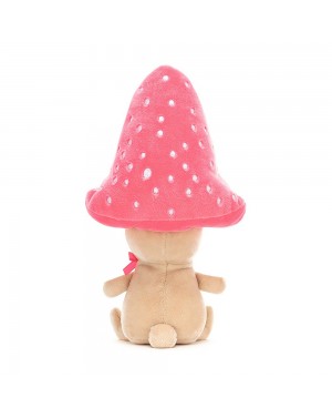 Fancy Fun-Guy Pattie ne manquera pas de remonter le moral de tout le monde ! Assise fièrement sous un grand chapeau rose chewing-gum brodé de taches de rousseur, et arborant un nœud en satin, Pattie est une habitante des bois élégante qui s'approprie généralement les endroits ombragés.