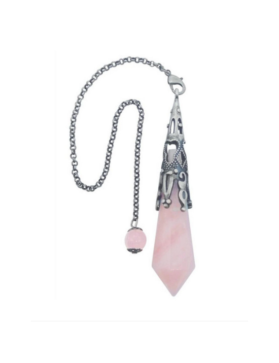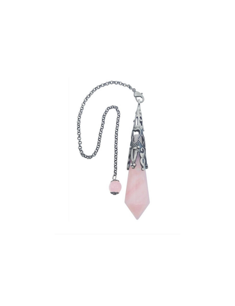 Pendule pointe quartz rose et métal argenté vieilli - Osmae