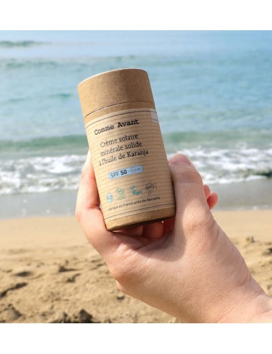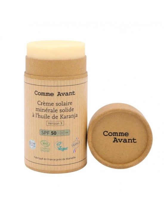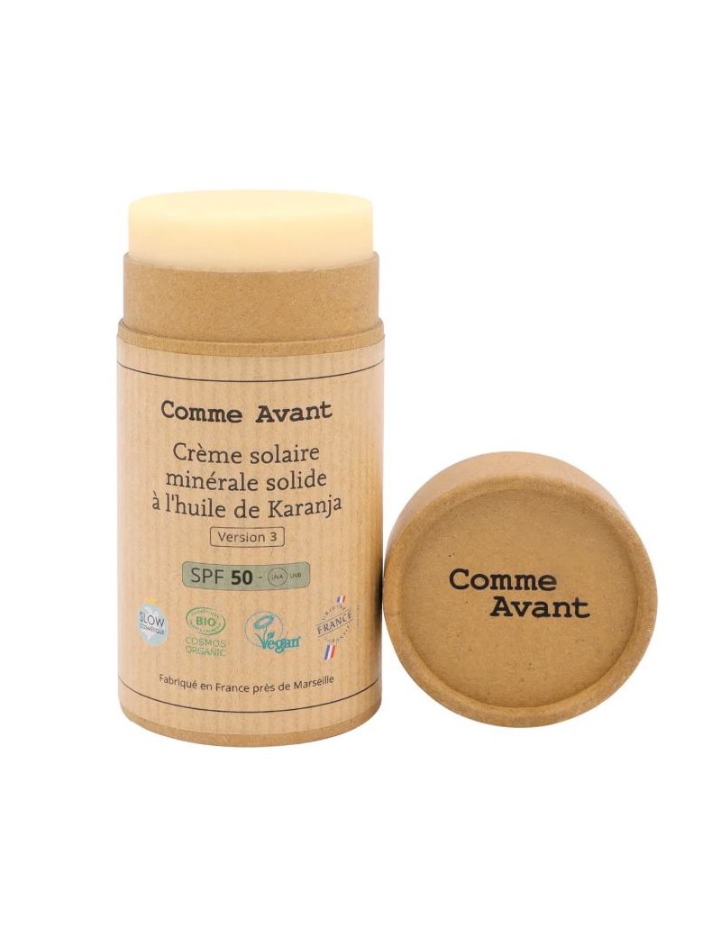 Composition courte : beurre de Murumuru, oxyde de zinc (agrémenté de deux composants pour une meilleure dispersion), cire de candelilla, huile de karanja, poudre de riz