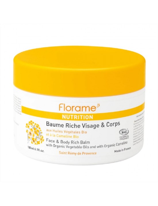 Le Baume Riche Visage & Corps Florame apporte réconfort et douceur aux peaux sèches. Ce soin, à la texture généreuse, nourrit intensément la peau et apaise les sensations d’inconfort grâce à son association d’Aloe Vera, beurre de Karité et d’Huiles Végétales biologiques. Il contribue également à la préservation d’une bonne hydratation cutanée, assurant ainsi douceur et souplesse.