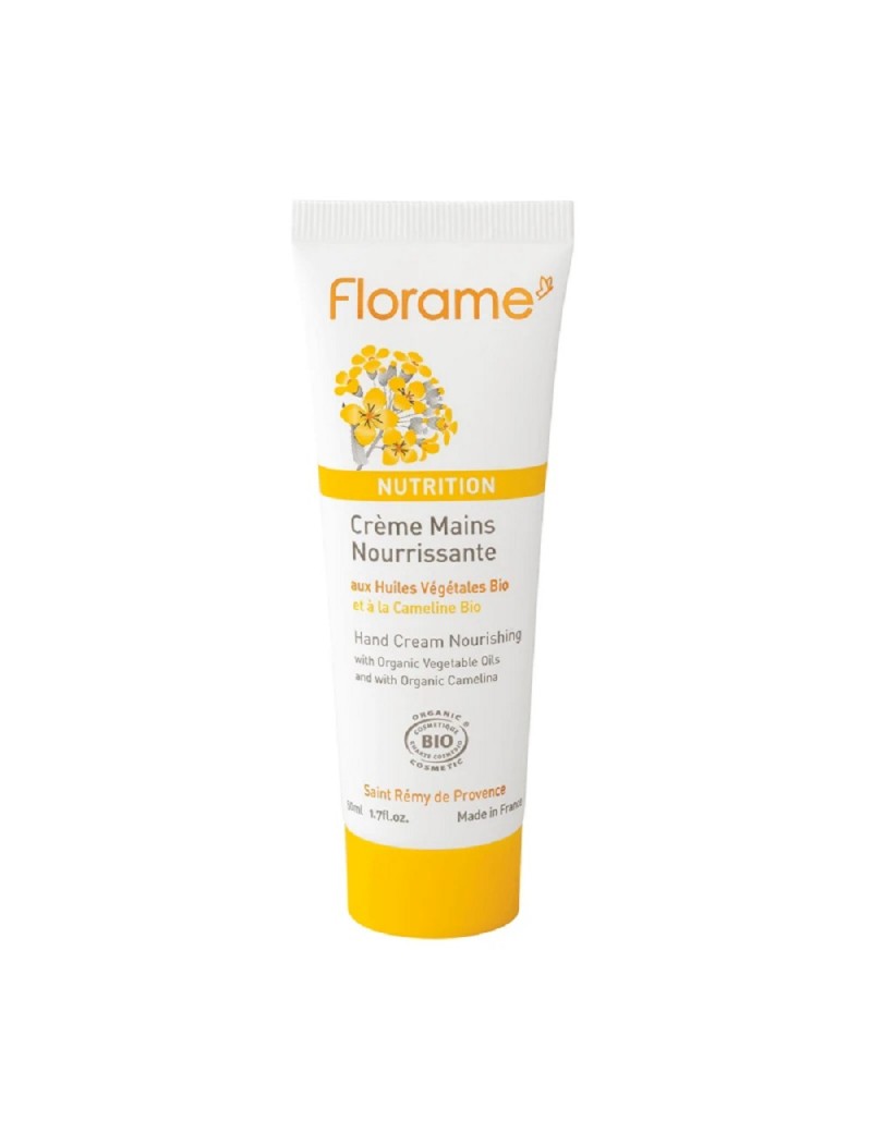 La gamme nutrition Florame offre les soins indispensables pour les peaux sèches et sensibles. Sa synergie d'huiles végétales bio d'Onagre et Calendula, riches en acides gras, régénère et assouplit l'épiderme tout en le protégeant contre la déshydratation. Les actions protectrice et apaisante du lait de Cameline biologique sélectionné par la recherche Florame, renforcent l'efficacité de ces soins. Les mains sont nourries, douces et confortables.