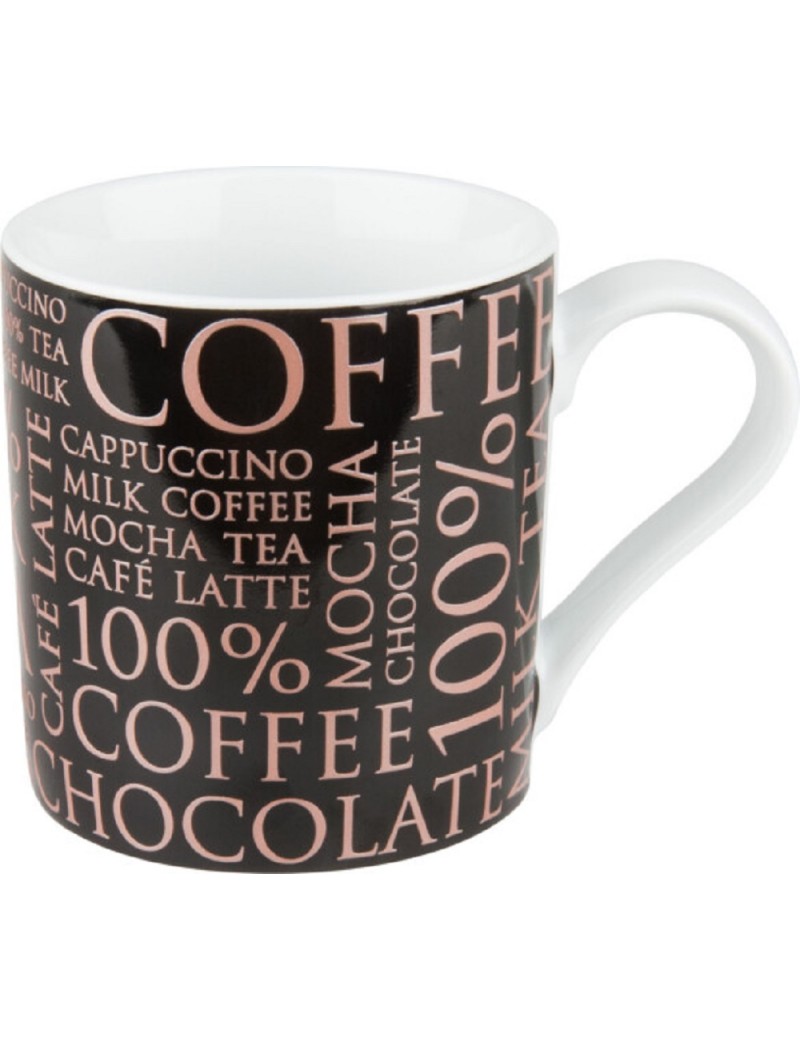 Élégant, moderne, tendance - 100% Coffee impressionne par son nouveau design : la combinaison de contrastes forts avec un jeu de couleurs or rose et un lettrage tactile en relief. Ce mug innovant se pare d'un magnifique lettrage fin en or rose en relief sur fond noir. Parfait pour le café, le cappuccino et plus encore.