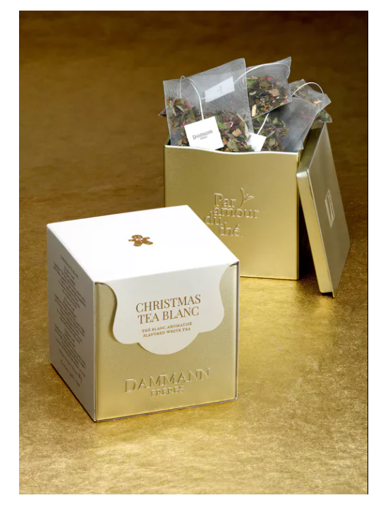 Découvrez et savourez notre Christmas Tea Blanc, un thé blanc finement épicé et aux saveurs fruitées de cerise et d'amande. 20 sachets Cristal® conditionnés en majesté dans une boîte cubique fabriquée en métal et en édition limitée. Cette boîte collector réutilisable sera parfaite pour la conservation de votre thé préféré, en sachets comme en feuilles.