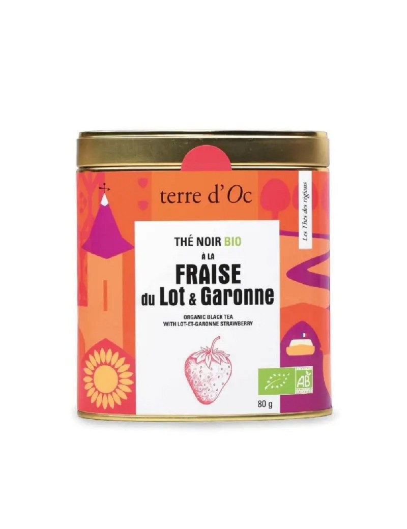 Fruit préféré des petits et des grands, la fraise s'invite dans ce thé noir intense pour do nner en bouche une liqueur subtile et fruitée à l'accord parfait! Les éclats de fraises présents dans ce thé sont issus de fraises BIO du Lot & Garonne.