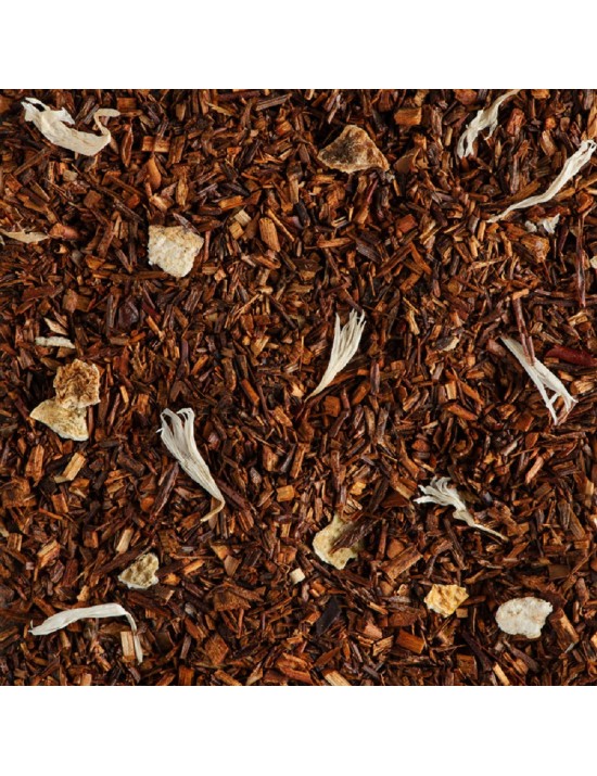 Superbe couleur cuivrée pour cette infusion de rooibos à la délicieuse saveur qui évoque le célèbre gâteau traditionnel à l’amusante forme de coquillage allongé. Une tasse aux notes gourmandes et discrètes d’amande, légèrement beurrées et soulignées d’un trait rafraîchissant de citron.