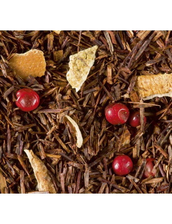 Un rooibos aux délicieuses notes d'orange et de pain d'épices, associées à des notes de gingembre, de clou de girofle et de poivre rose. Une infusion ronde, finement boisée à la saveur gourmande. Conditionné dans une boîte en métal. Poids net : 100 g.