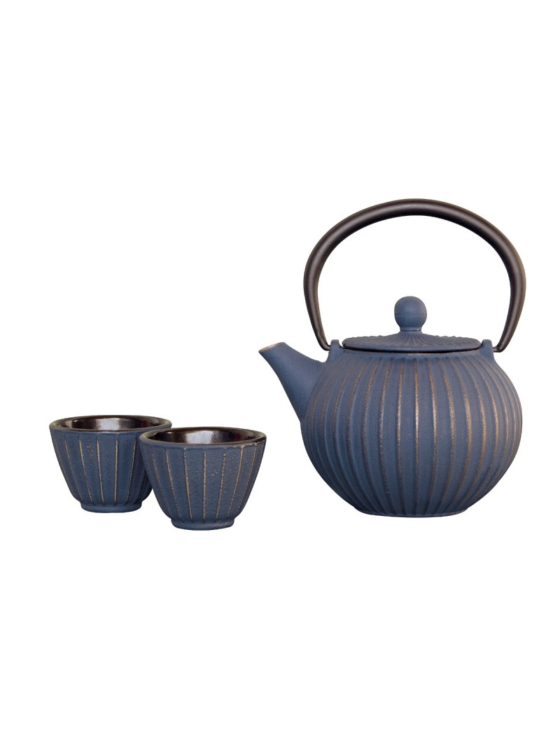 Coffret théière en fonte + 4 tasses Osaka bleu