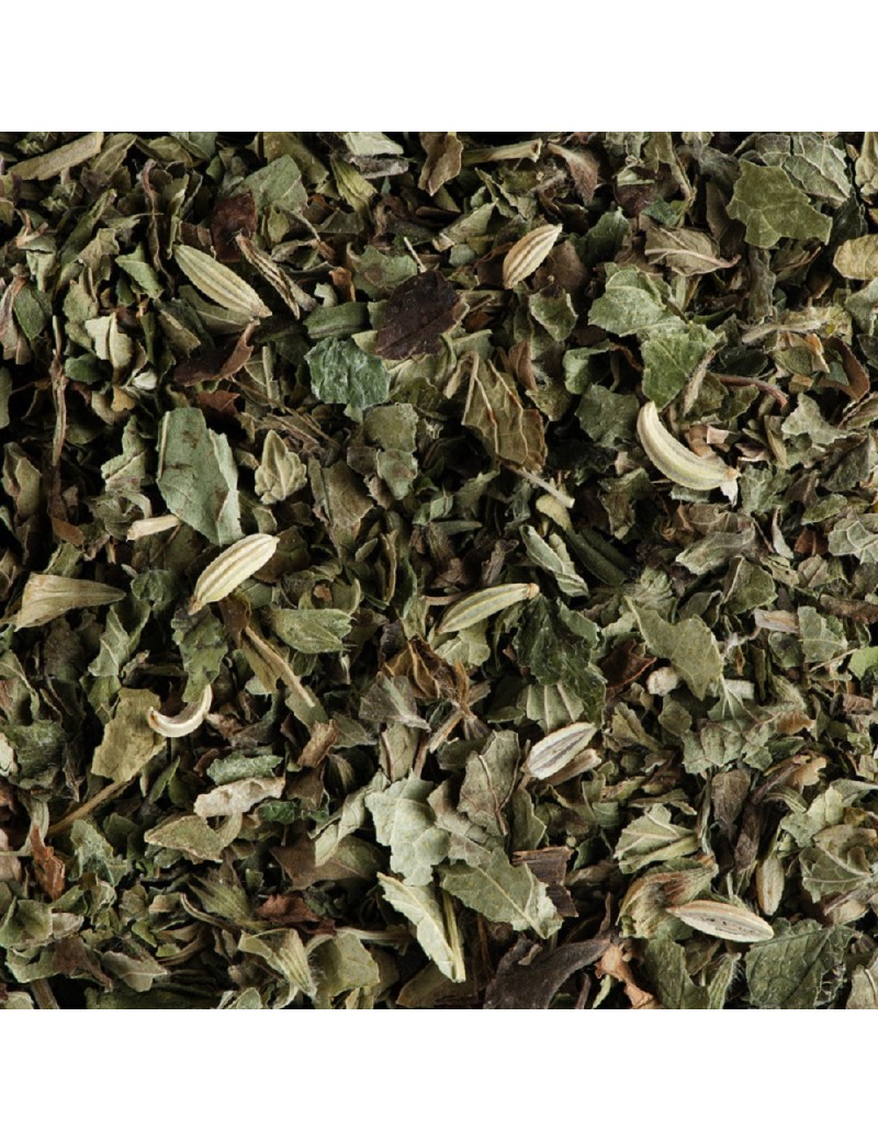 Cette tisane mêle le parfum anisé du fenouil à la fraîcheur de la menthe poivrée. S'ajoutant à cela la mélisse et la feuille de cassis qui délivrent une infusion rafraîchissante aux notes herbales et fruitées.